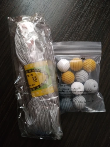 Цвет как на фото. Нитка Nilon, если нет ударов. Идеально подходит для силиконовых шариков. Пришло быстро.