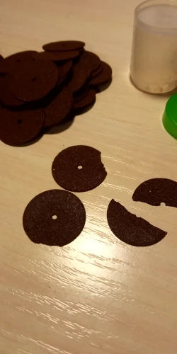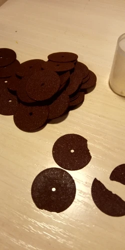 Диски очень слабые, ломаются при небольшом нажатии или перекосе. Такое впечатление, что они сделаны из сушёной глины. Товар никчёмный, лучше брать чёрные, они хоть армированные как у болгарки.