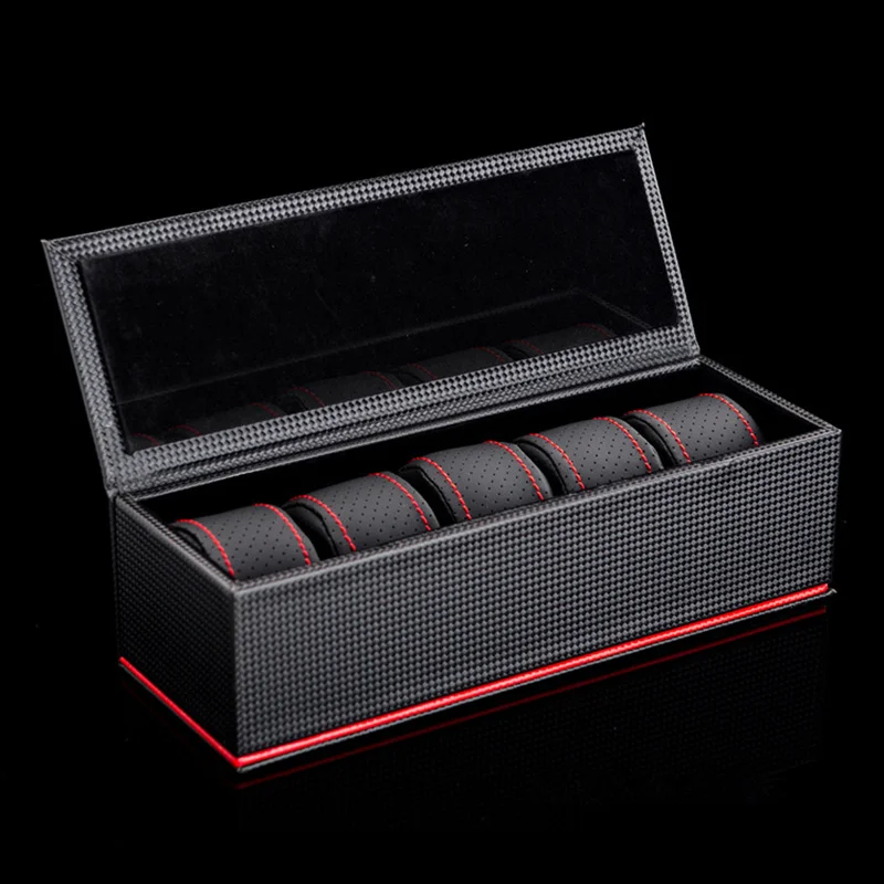 Новинка, 5 слотов, коробка из углеродного волокна для часов, органайзер, черный чехол для часов, хранение мужских часов, дисплей, Подарочный чехол