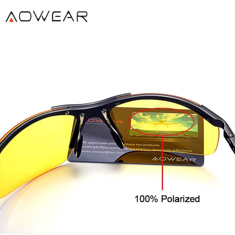 AOWEAR Роскошные поляризованные очки ночного видения для мужчин, алюминиевые желтые большие спортивные стильные солнцезащитные очки для вождения автомобиля для ночного вождения