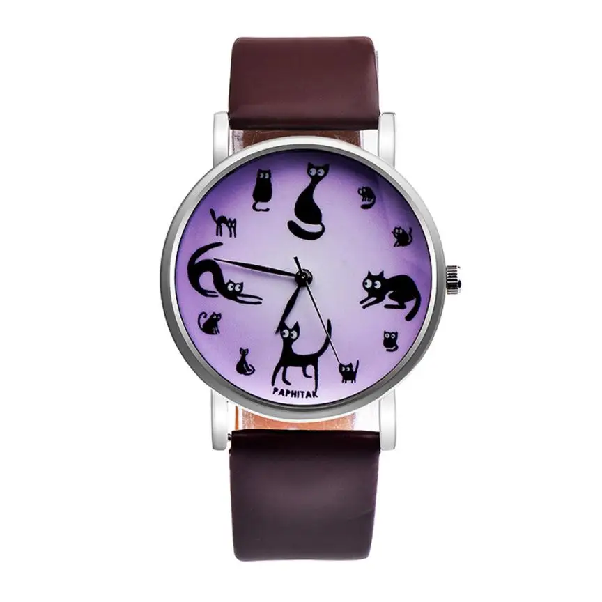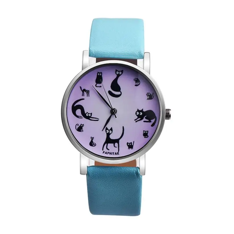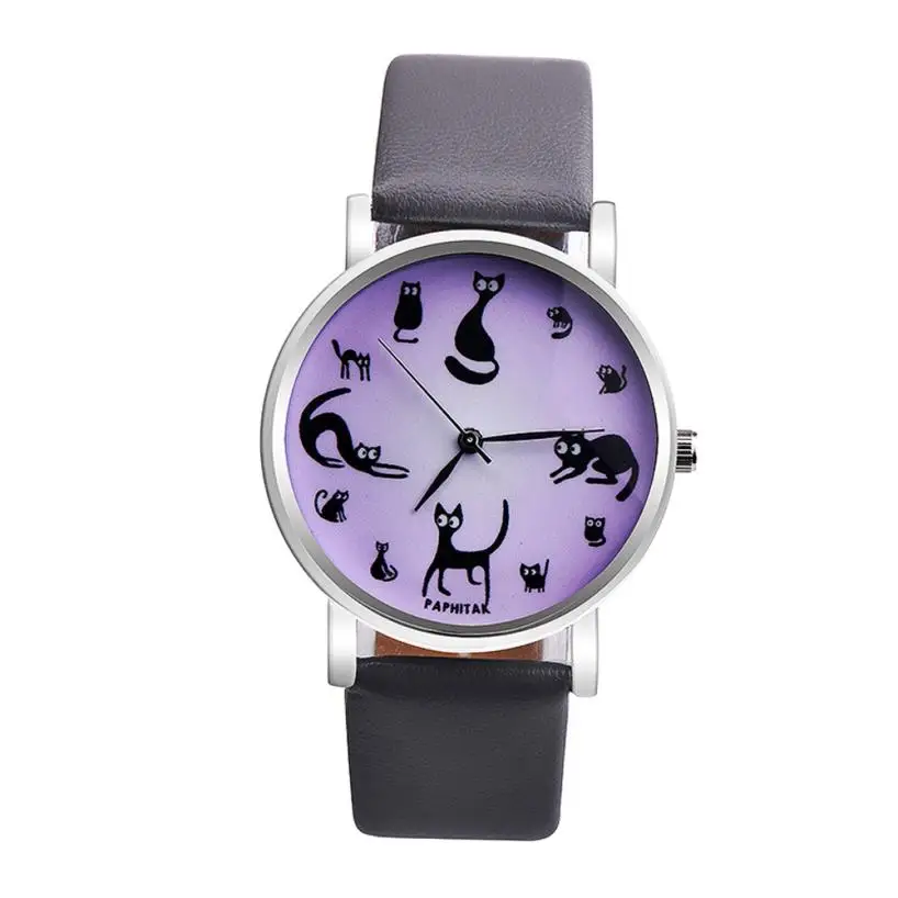 Часы наручные женские кварцевые с котом, Модные Аналоговые, с искусственной кожей, с топовым подарком, 30p