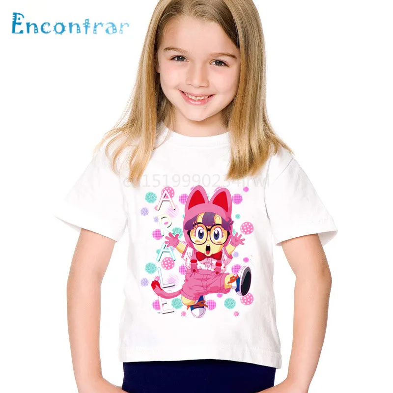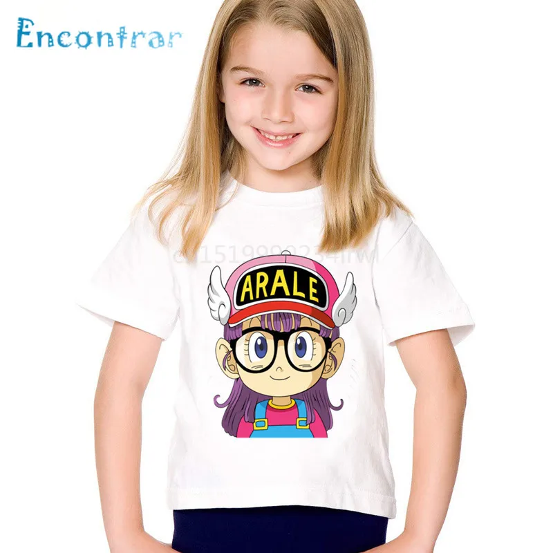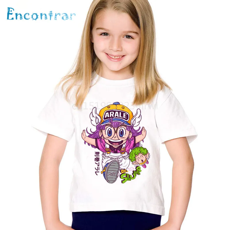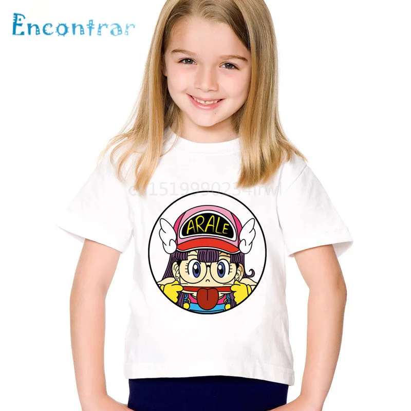 Милые детские Забавные футболки с аниме принтом Arale, детские летние футболки для мальчиков и девочек, повседневные топы, детская одежда, oHKP5110