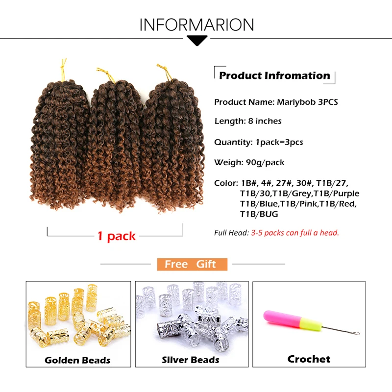 SAMBRAID 8 дюймов страстные курчавые плетеные крючком косы Marlybob для волос синтетические плетеные волосы для наращивания Marley для афроженщин
