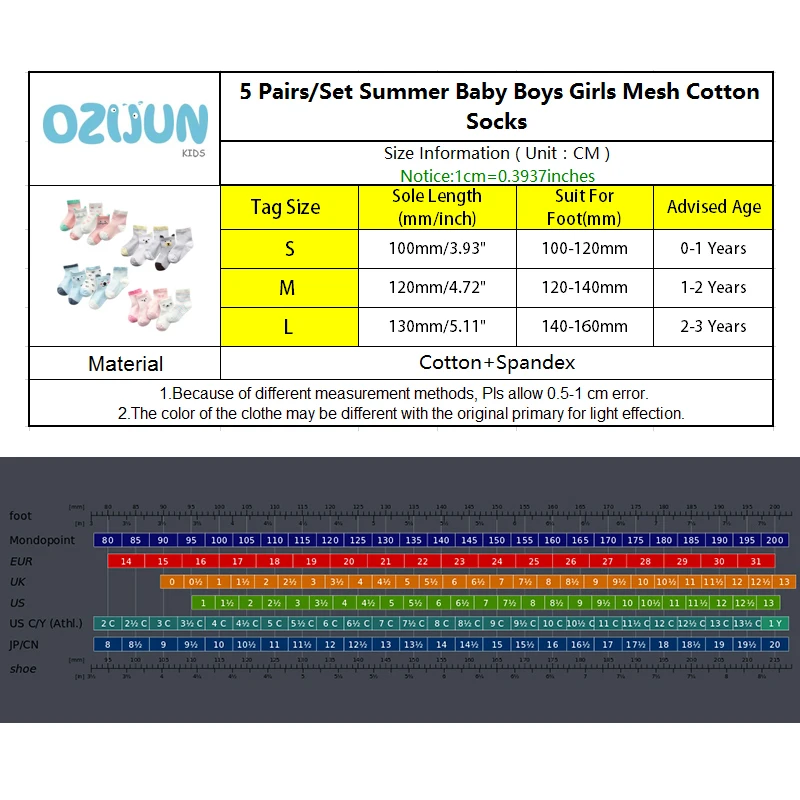 Носки детские, хлопковые, тонкие, 4 цвета, 0-11-2От 2 до 3 лет, 5 парЛот