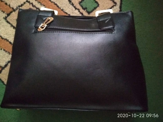 Сумка пришла с заломом, на фото видно, что залом как раз в той стороне, где не оказалось воздушной подушки. Очень сильно воняет. Уже четыре дня на балконе - не выветривается. Кожзам очень грубый, на фото смотрится лучше, чем на самом деле. Длинный ремешок тонкий и с данной моделью сумки не смотрится.