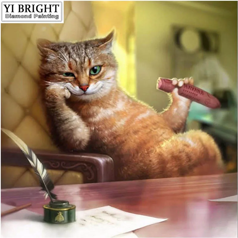 Полностью квадратнаякруглая дрель 5D DIY Алмазная картина "курительная кошка" вышивка крестиком Мозаика домашний Декор подарок JCC