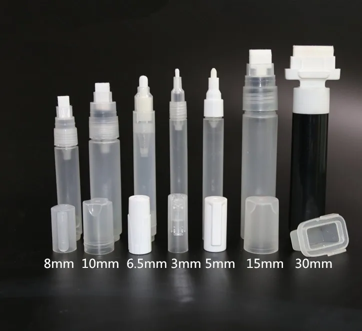 Аксессуары для ручек с граффити, ручка 3 мм, 5 мм, 6,5 мм, 8 мм, 10 мм, 15 мм, 30 мм, пустой стержень для ручки, пластиковый Жидкий Мел, маркер, бочки, принадлежности для письма