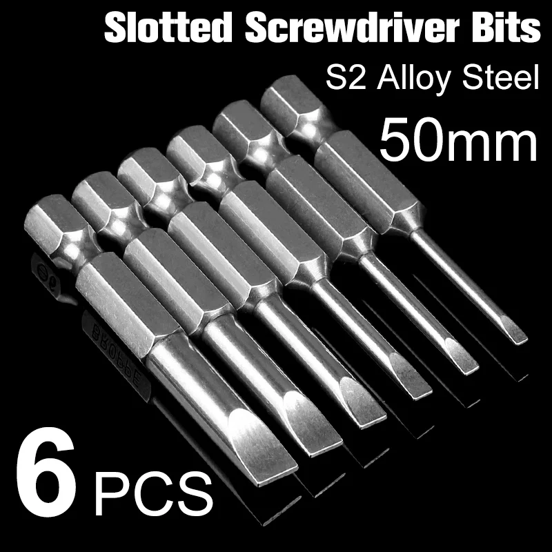 HOEN 6 шт./компл. 50 мм 2,0-6,0 мм Высокое качество серебро S2 легированная сталь плоская головка наконечник с прорезью магнитные прорези отвертки