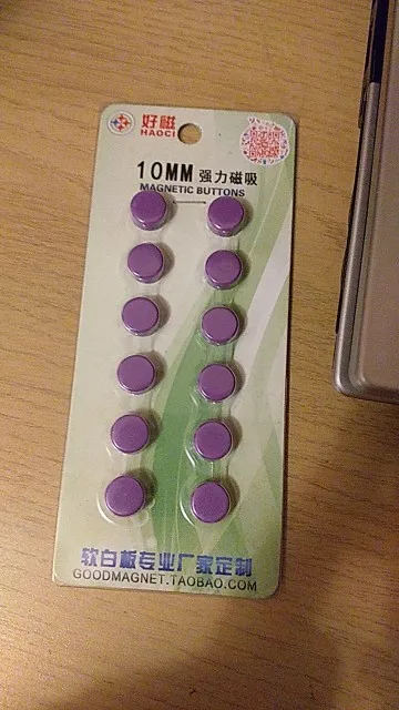 not very strong magnets, but useful for hanging small papers on the fridge!