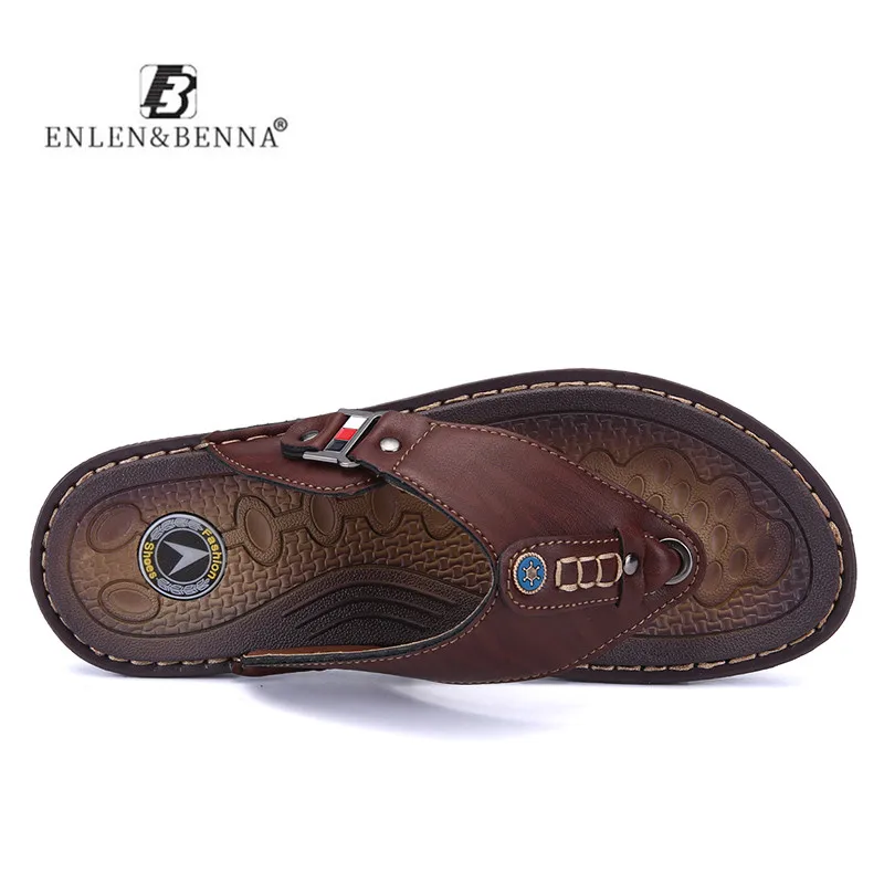 Удобные резиновые Вьетнамки; Брендовые летние мужские сандалии; Кожаные высококачественные шлепанцы; Мужская Уличная обувь на плоской подошве; Новинка 2020 года