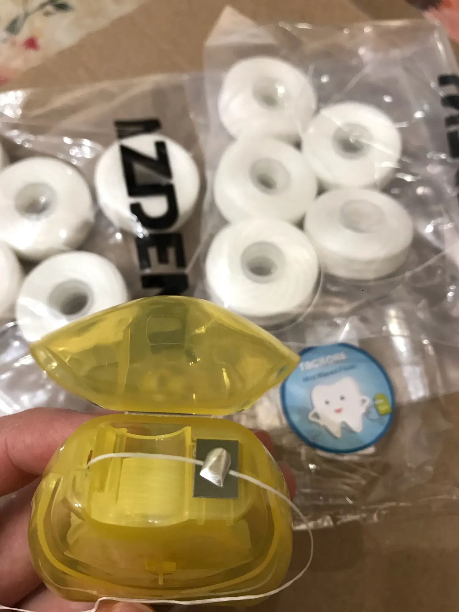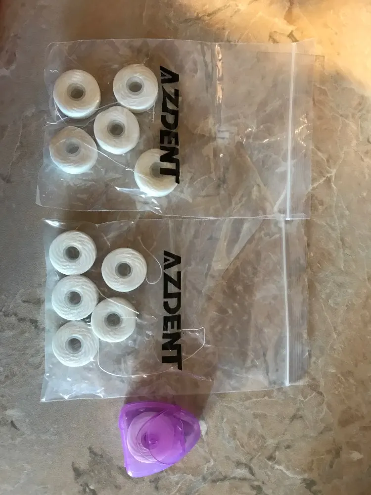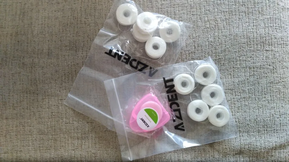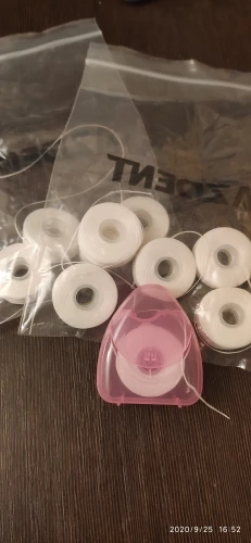 Прибыло быстро. Нитка хорошая, иногда немного лохматится, но в этих же местах и Oral-B тоже лохматится. Аромат сильный, пахла вся посылка даже через несколько пакетов, но приятно мятно. Внешне как на фото продавца