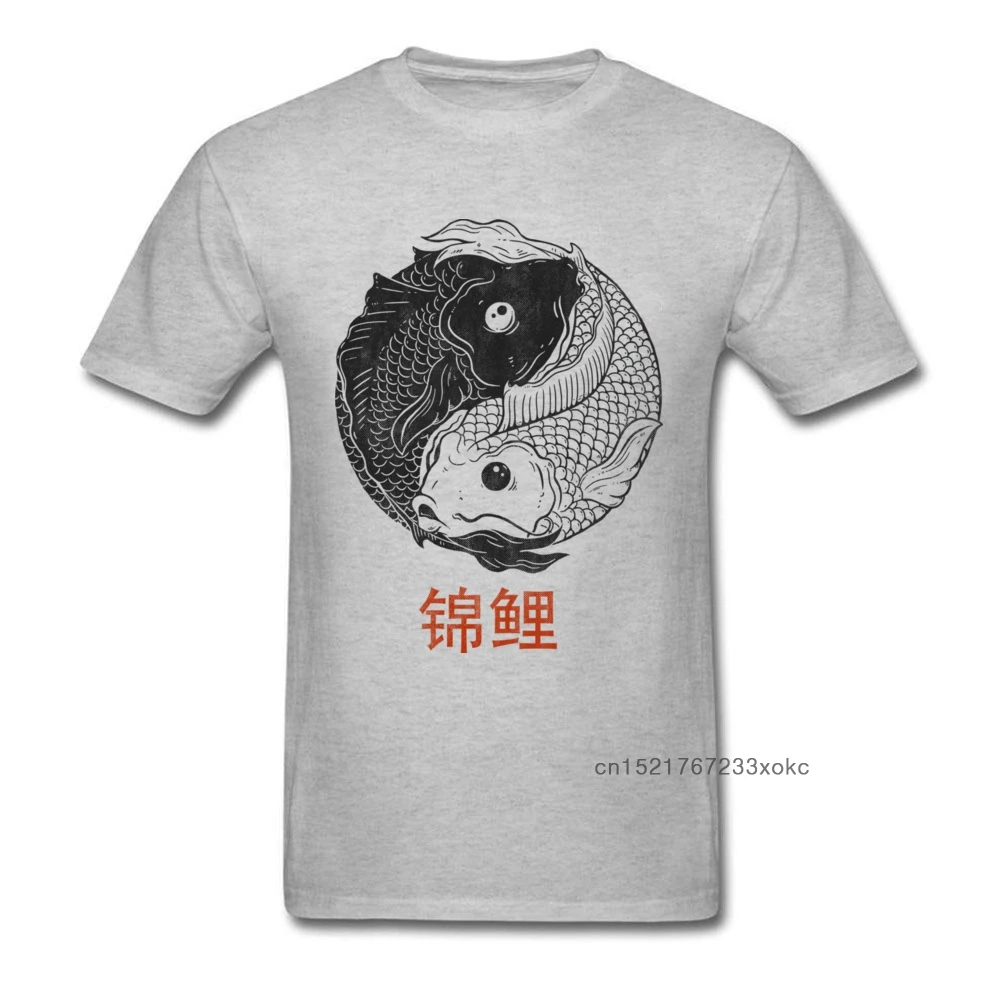 Мужские футболки с рисунком рыбы KOI, повседневные футболки с коротким рукавом и вырезом лодочкой, 100% хлопок, лето-осень