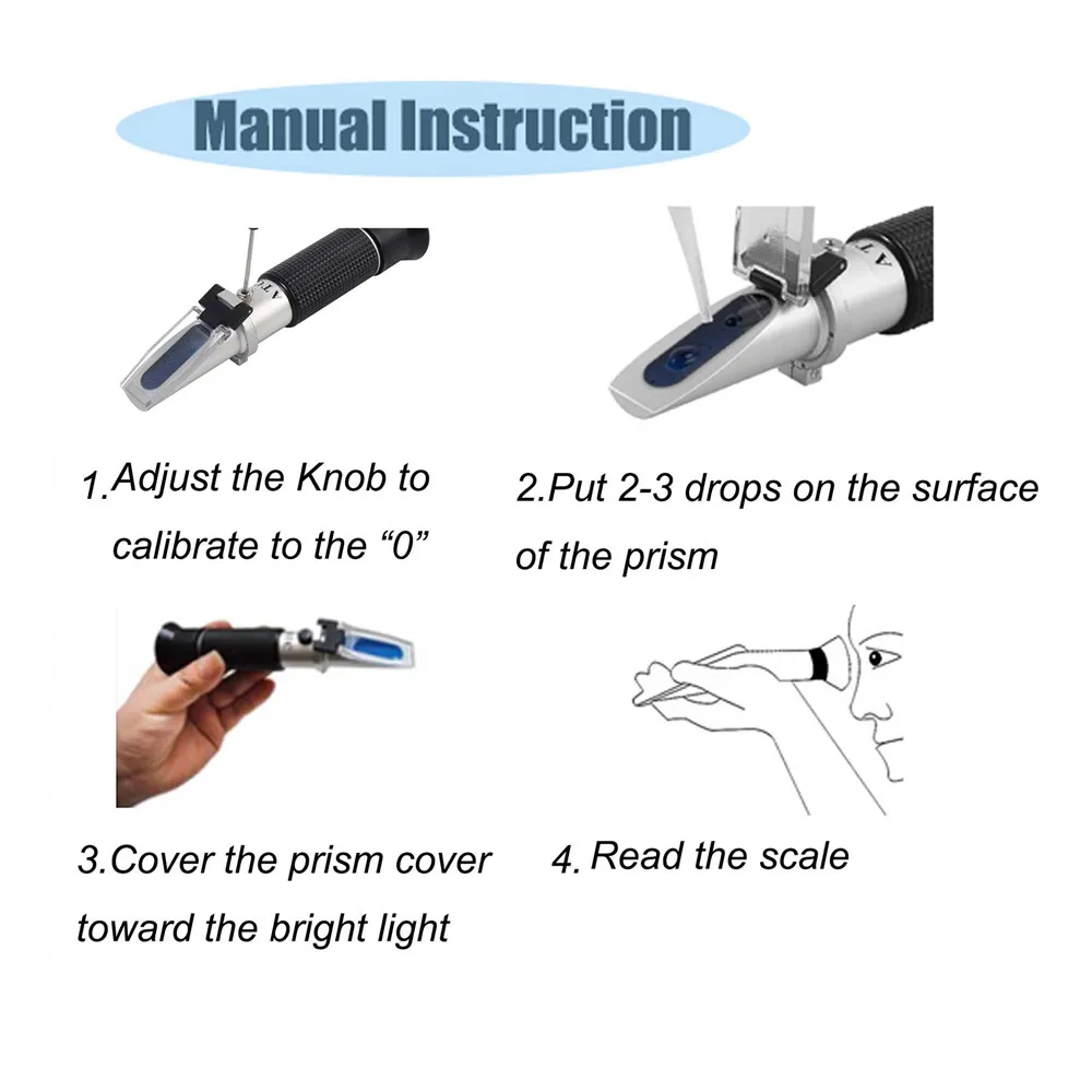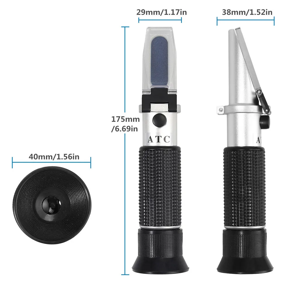 Процедура измерения не является сложной, просто очистите спиртовой рефрактометр перед использованием и как только дистиллированная жидкость образца на месте убедитесь, что пузырьки воздуха не появляются. Полностью оборудованный ATC, он автоматически настраивается для корректировки разницы температур во время использования. Поскольку показатель преломления очень зависит от температуры, важно использовать рефрактометр с автоматической температурной компенсацией (ATC), чтобы дать вам самое точное измерение в любом типе температуры окружающей среды.
