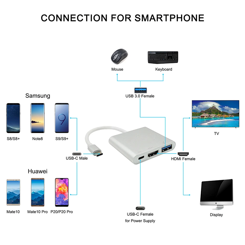 USB Type C к HDMI-совместимый адаптер USB C HDMI-совместимый кабель USB-C Jack 4K Thunderbolt 3 Hub для Apple MacBook Air 2018 MacBook Pro 13Информация о продукте
