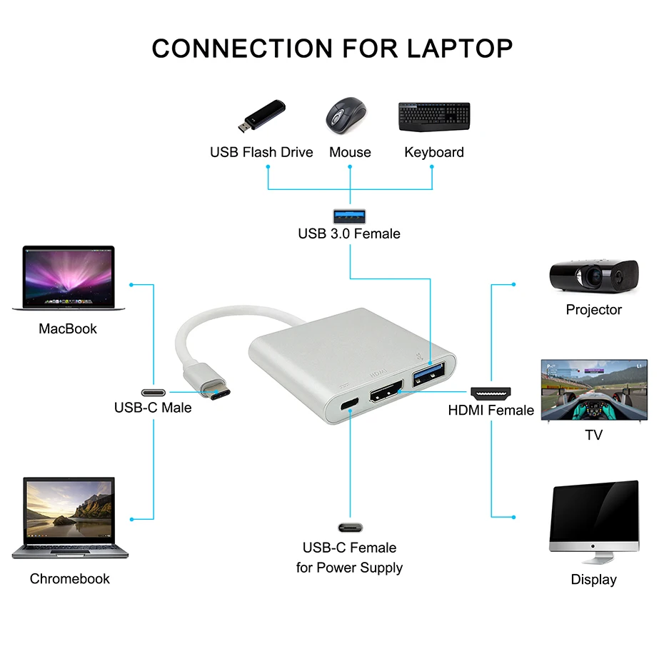 1 х USB Type C к HDMI-совместимый + USB3.0 + адаптер Type-C