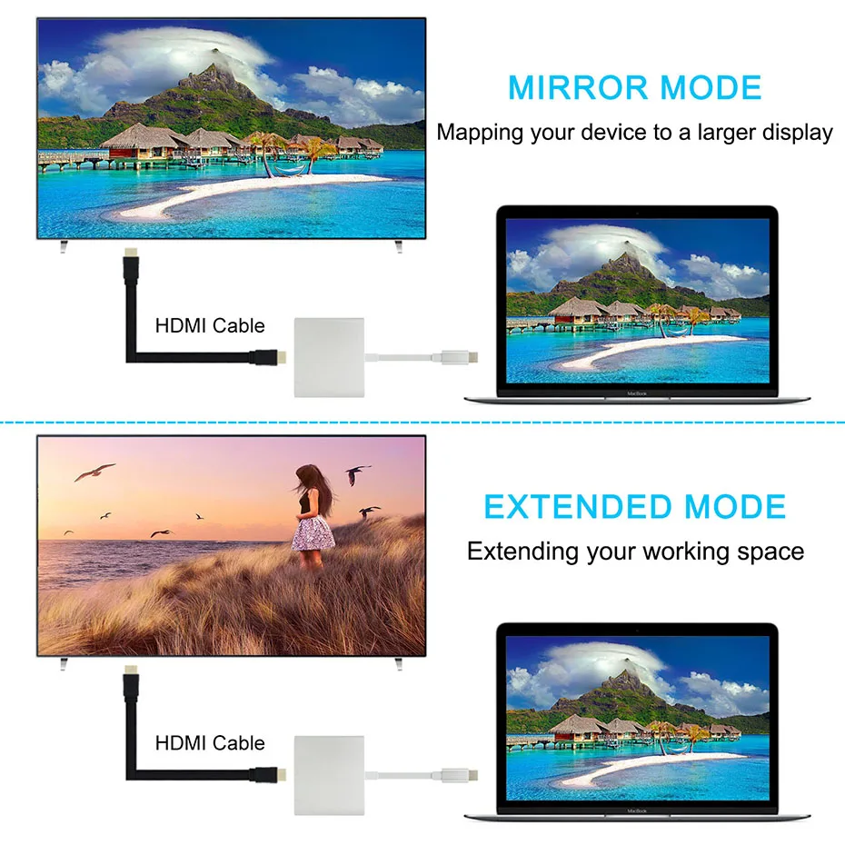USB Type C к HDMI-совместимый адаптер USB C HDMI-совместимый кабель USB-C Jack 4K Thunderbolt 3 Hub для Apple MacBook ProAir 2018