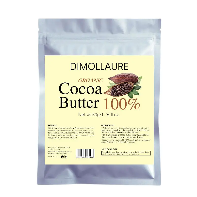 Нерафинированное какао масло Dimollaure, 100 г, сырье для сухого ухода за кожей, увлажняющее питательное масло для тела, растительная косметика
