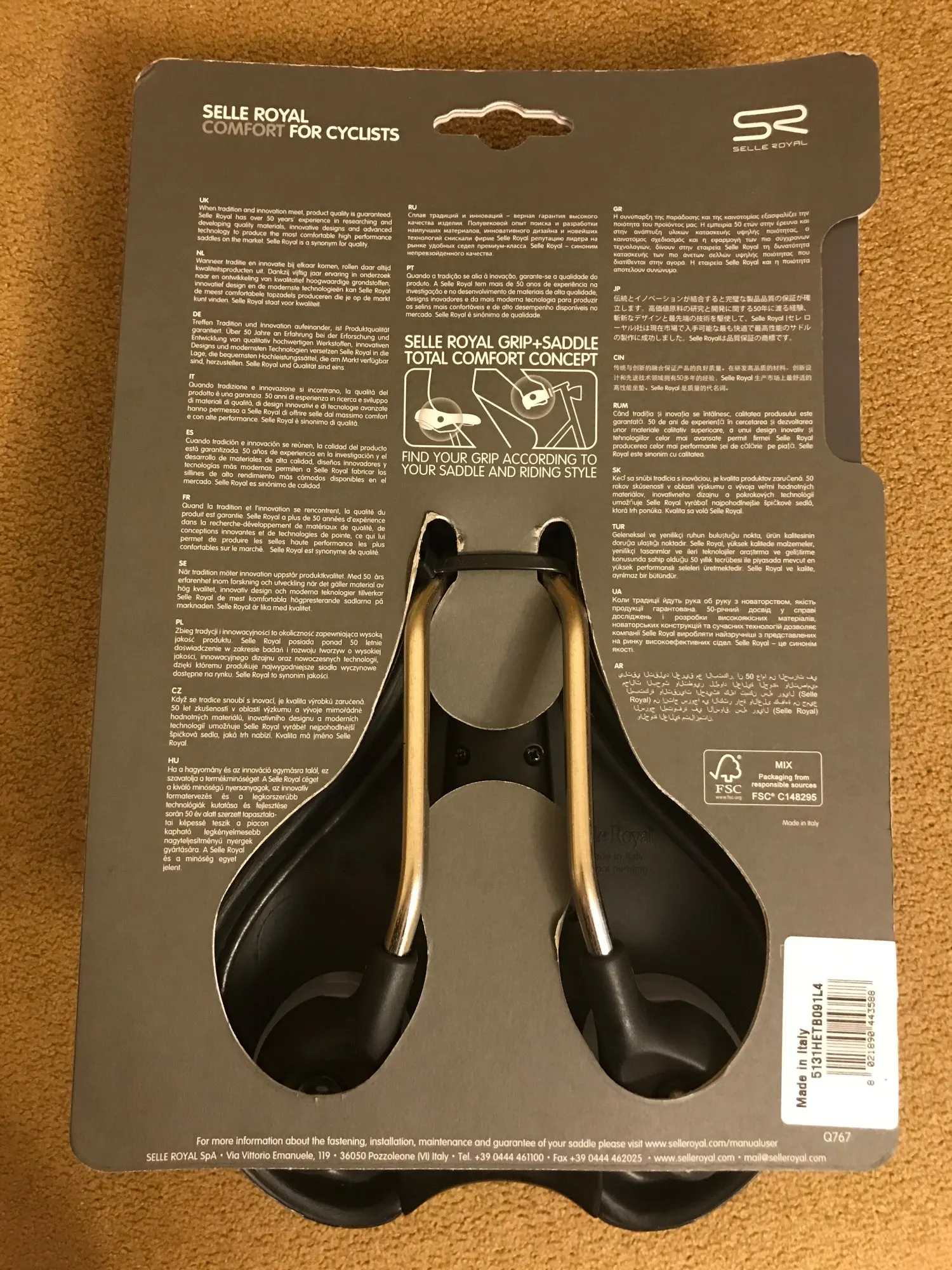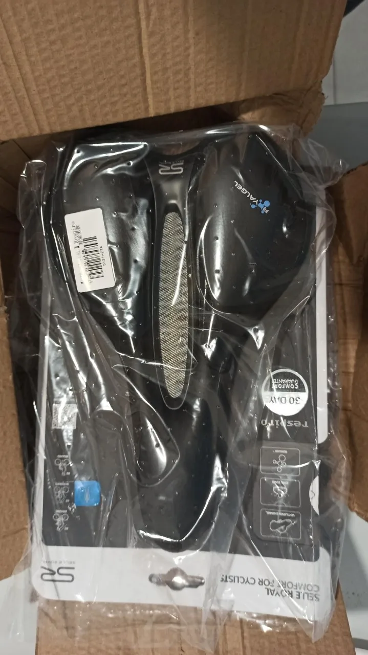 До Москвы доехала за 18дней. Поставил. Правда из-за того что сезон кончился покататься уже не получилось. +++ Она действительно мягкая. Довольно широкая (модель 5131H). Ложбинка по середине. ---- На упаковке нанесено 2 весьма примечательных указания: 1) 30дней гарантии комфорта. Именно комфорта. Эммм простите а потом что, вспененый наполнитель промнётся? 2) Указано предупреждение не оставлять седло под прямыми солнечными лучами при температуре воздуха выше +25°C во избежании деформации. Что довольно странно для супер инновационного запатентованного материала разработанного в Италии где летом температура +35 это вообще в порядке вещей. 3) Как не странно седло не очень удобное. Материал такой мягкий что садясь на седло я почувствовал какие-то "острые" грани. Толи это пластиковые основание у которого не скруглили края. Толи вставки глянцевого материала чувствуются. Возможно если весной поиграть со смещением и углами установки то это ощущение пропадёт. Но пока так.
