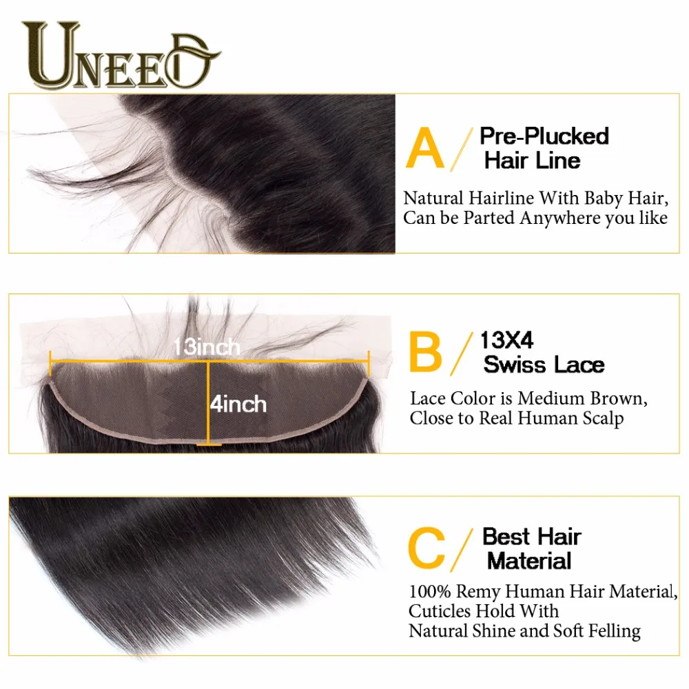 Перуанские прямые волосы Uneed, Фронтальная застежка 13x4, Фронтальная застежка от уха до уха с детскими волосами, человеческие волосы Remy, Фронтальная застежка