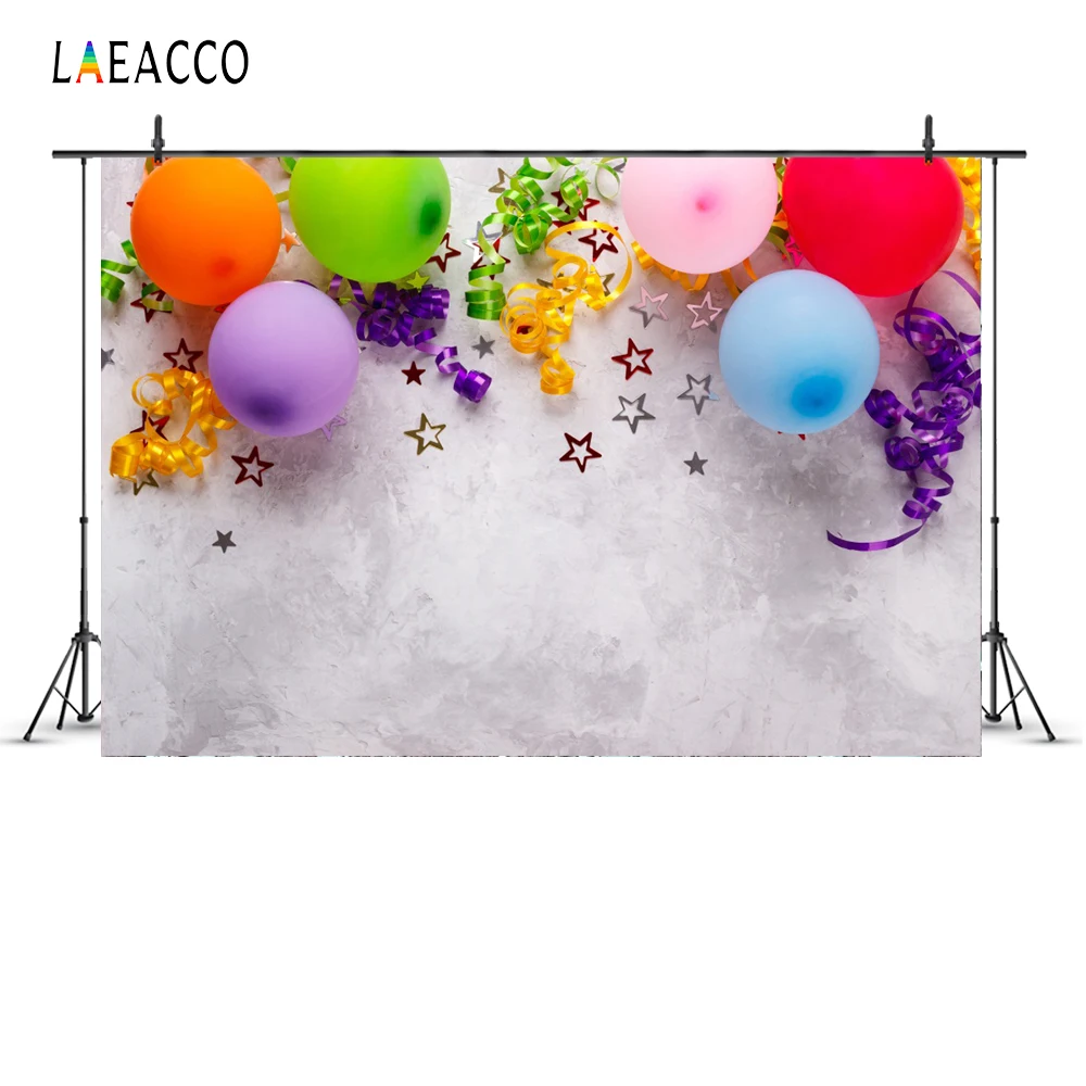 Фон для фотографирования детей Laeacco, день рождения, фотозона, красочные воздушные шары, ленты, звезды