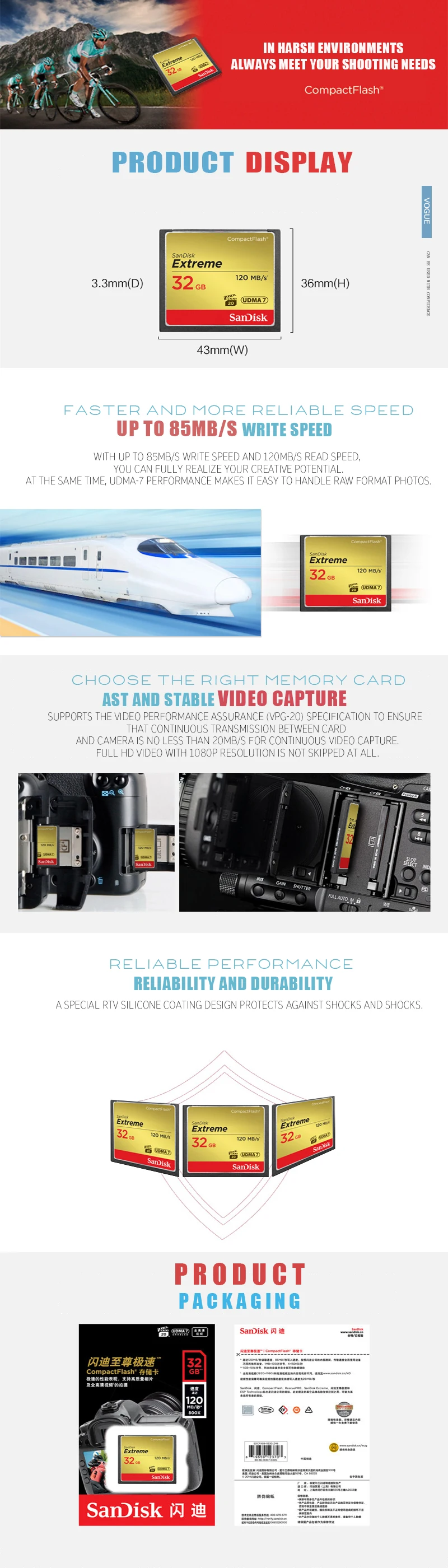 Двойной Флеш-накопитель Sandisk Extreme Compact Flash Камера карты ...