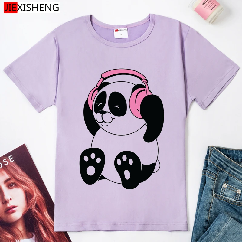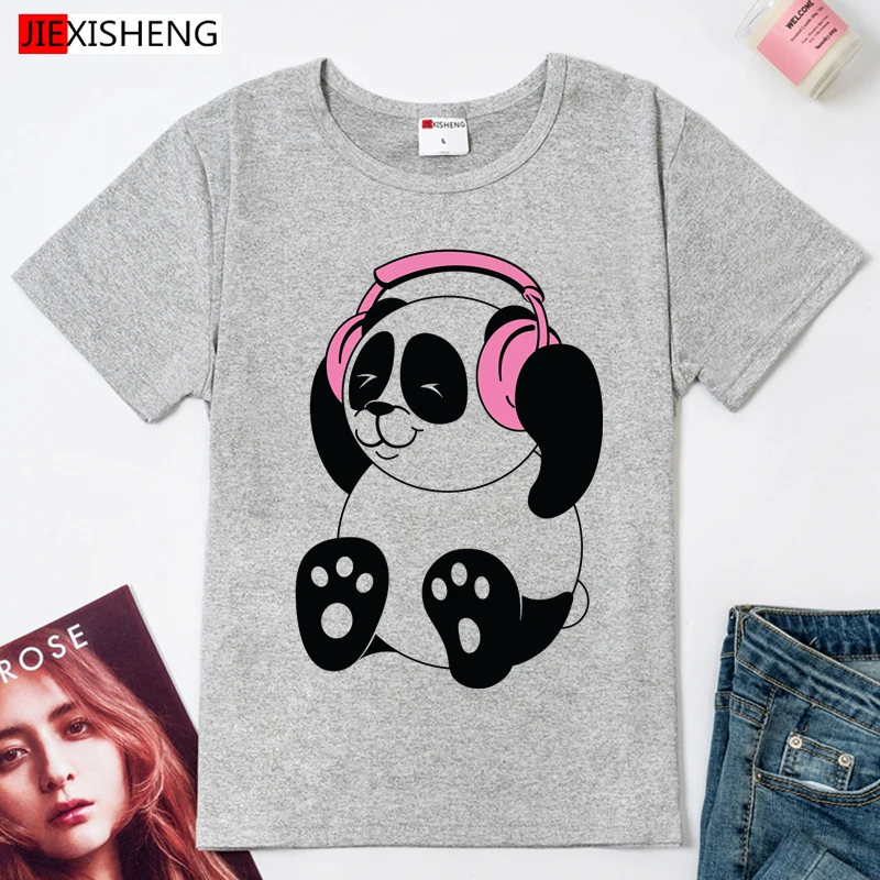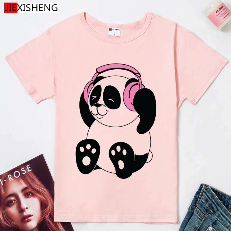 Летняя забавная женская футболка с принтом диджея панды, крутая футболка в стиле Харадзюку, повседневные футболки с коротким рукавом, женские белые топы, футболки