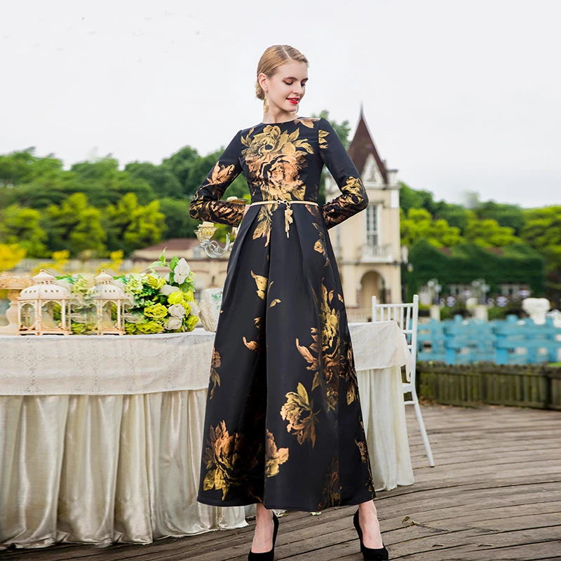 Большие размеры, качественное мусульманское женское платье с длинным рукавом, длинное платье макси, Дубай, абайя, модное жаккардовое платье с цветочным рисунком, элегантное осеннее винтажное S-4XL