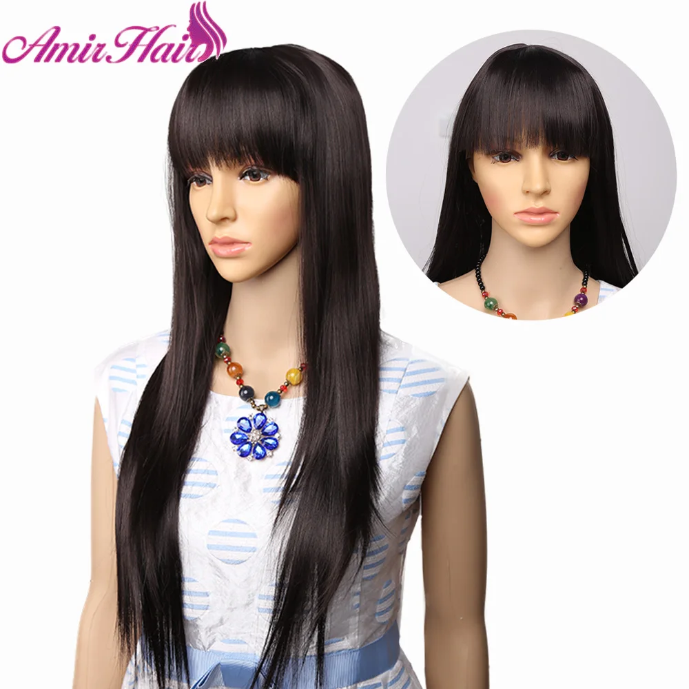 Парик Amir с длинными прямыми волосами и челкой, парик для женщин, светлые, фиолетовые, черные, красные, коричневые синтетические волосы, парики для косплея