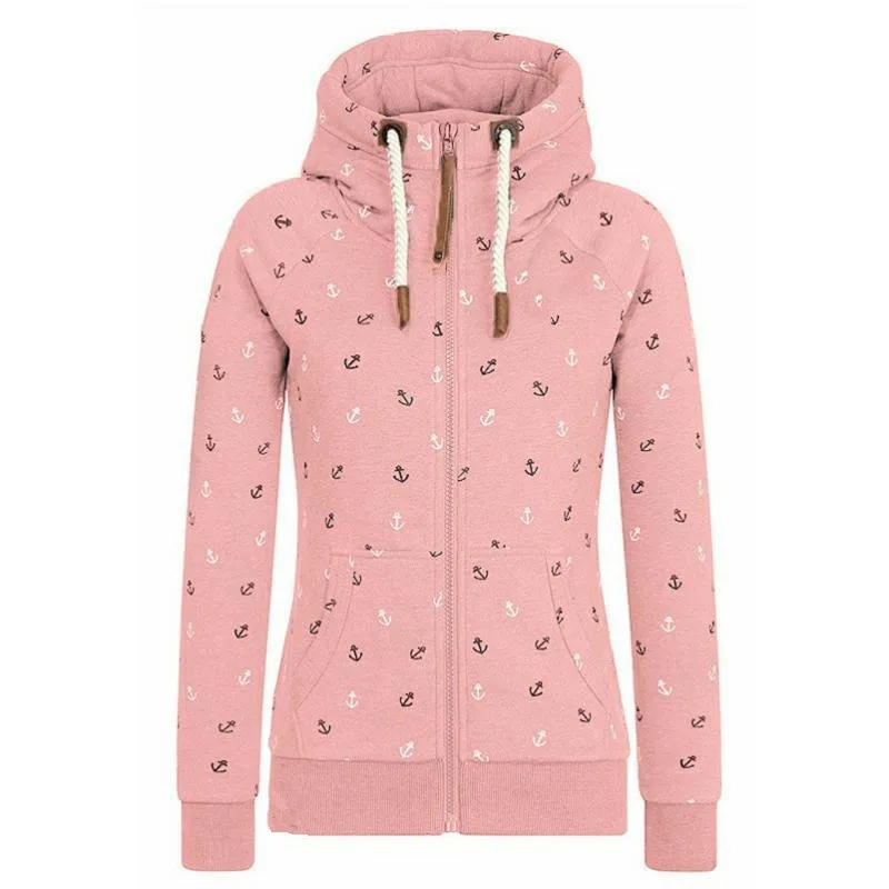 Толстовка Женская на молнии, с принтом, розовая, серая, синяя, зеленая