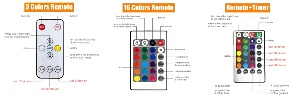 A-2 цвета на ощупь: сенсорный выключатель, белый и желтый светильник.B-3 цвета: сенсорный выключатель + переключатель крана, белый, желтый и теплый светильник.Пульт дистанционного управления C-3 цветов: сенсорный выключатель + пульт дистанционного управления; Функция таймера, белый, теплый белый и желтый светильник.D-16 цвета дистанционного управления, сенсорный выключатель + пульт дистанционного управления; Белый и RGB светильник.Электронный пульт и таймер, сенсорный выключатель + пульт дистанционного управления; Функция таймера; Белый и RGB светильник.