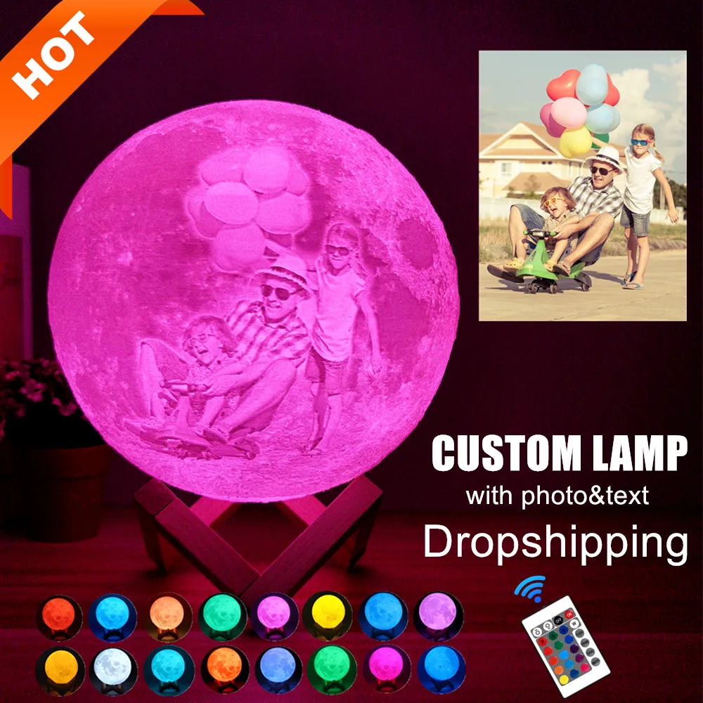 Перезаряжаемый светсветильник льник-ночник для детской комнаты, с 3D-принтом, для фототекста на заказ