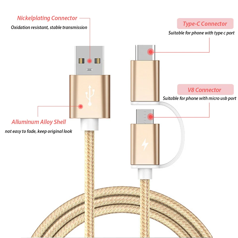 Зарядный кабель 2 в 1 USB Type C и Micro USB, внешний зарядный кабель для Samsung Galaxy A3A5A7 2017 J3J5J7 2016 Type-C, двойное зарядное устройство USB