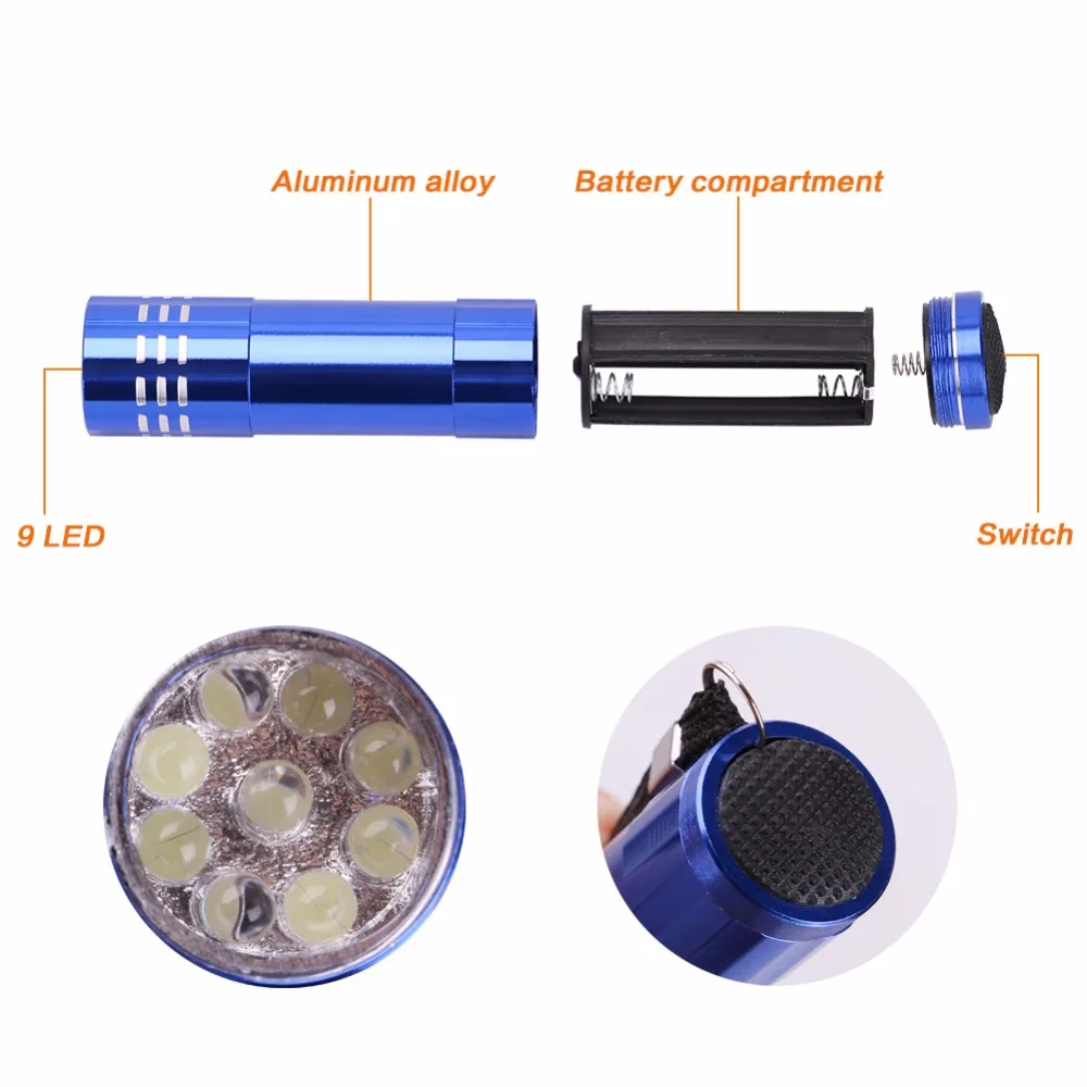 Миниатюрная светодиодная вспышка, 3 режима, 9 светодиосветодиодный, маленький ручной фонарь для наружного освещения, светильник щение для кемпинга с 3 батареями ААА