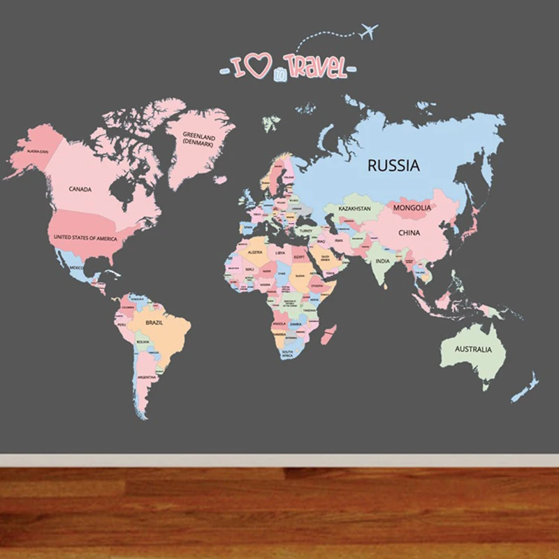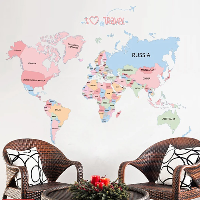 Карта мира на стену наклейки на стену для детской комнаты домашний ...