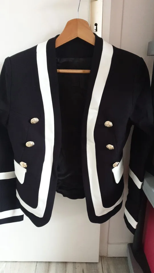 Женский классический блейзер, черно-белый блейзер с металлическими пуговицами, верхняя одежда, 2021