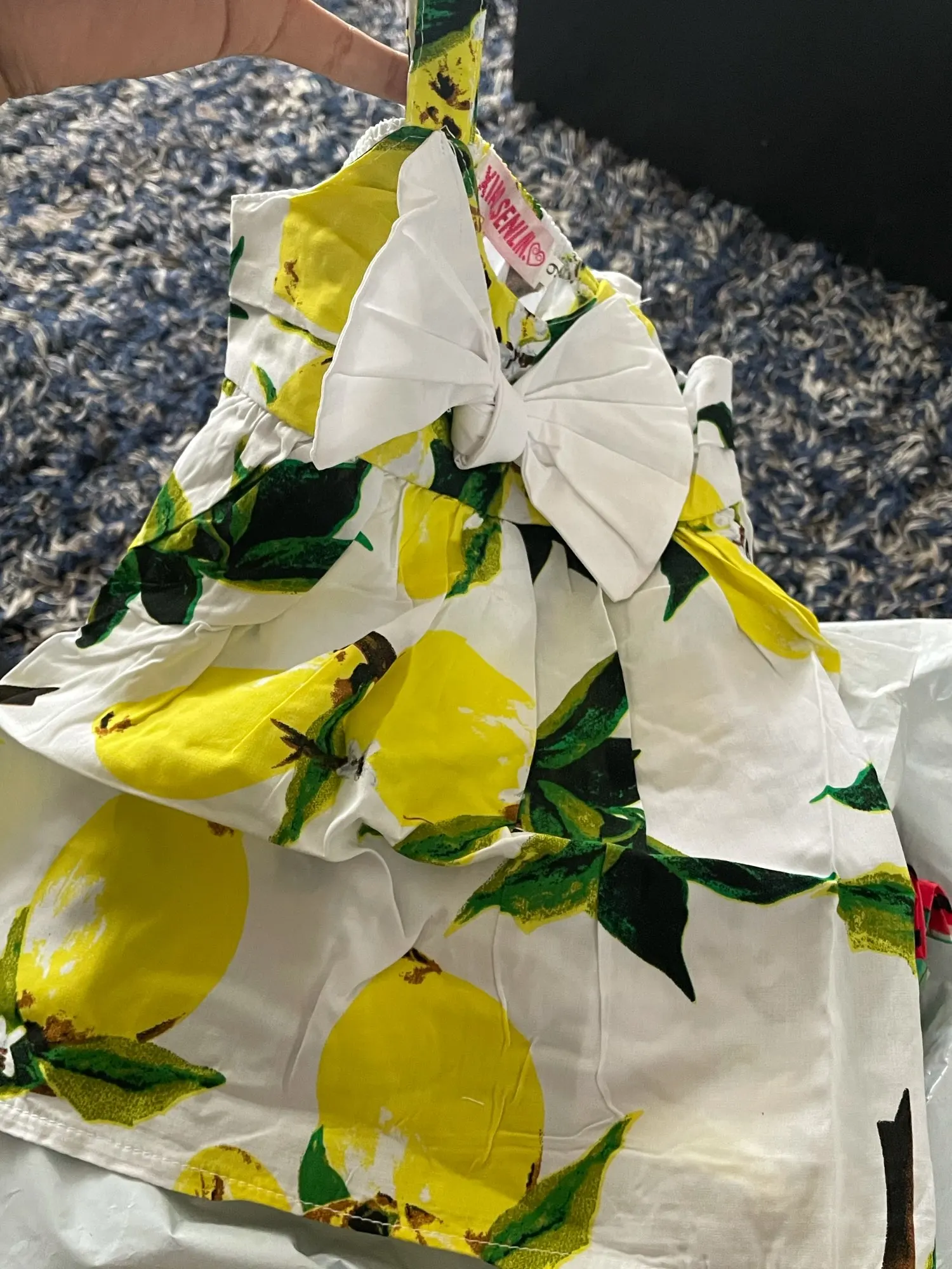 Летнее платье для новорожденных девочек, платья на крестины, платье принцессы на день рождения для маленьких девочек, платье с лимонным принтом