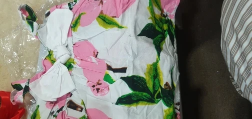 очень милое платье. На рост 72 см нормально, надеюсь летом походим в нем. Ткань тоненькая, но приятная на ощупь. Кое где торчат нитки, но не криминально. Цвет яркий.