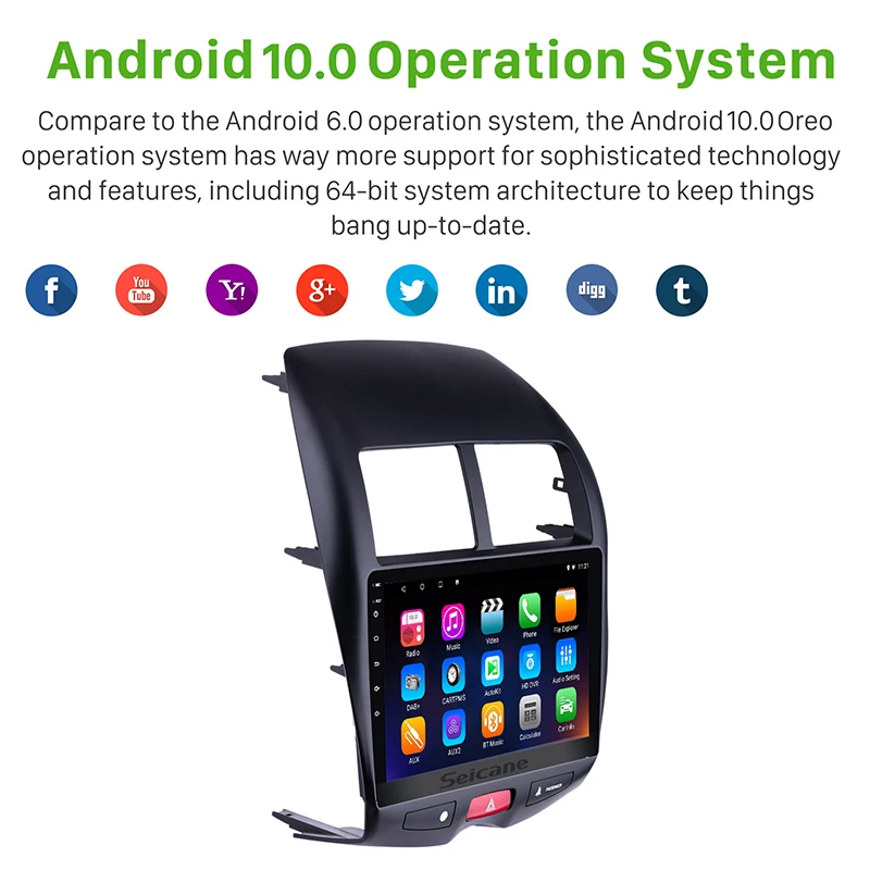 Seicane 10,1 "Android 10,0 Bluetooth HD 1024*600 Автомобильный GPS мультимедийный радио плеерДля 2010 2011 2012 2013 2014 2015 Mitsubishi ASX Peugeot 4008
