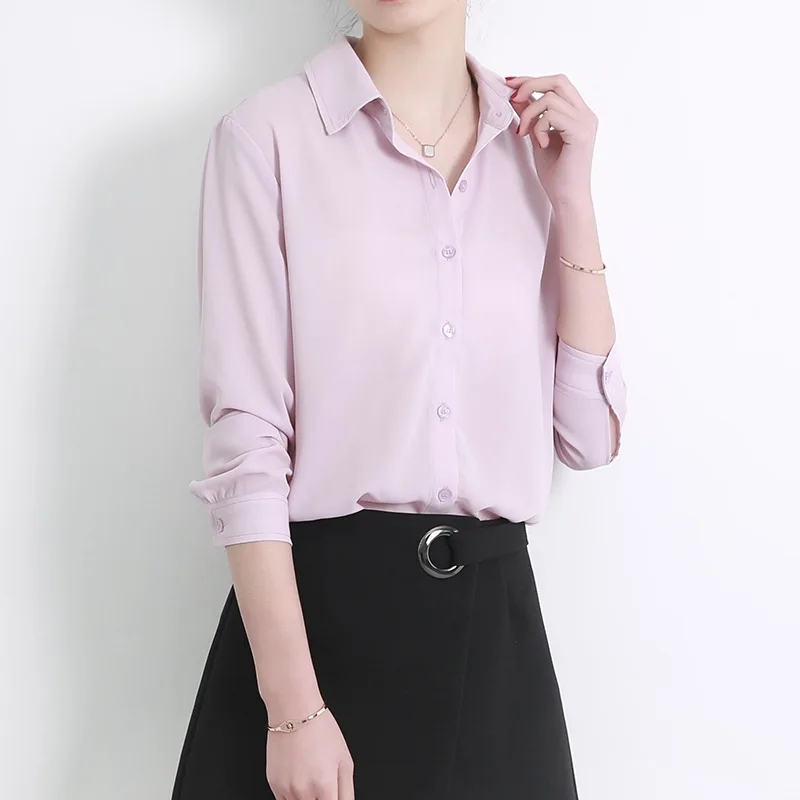 Женская блузка с длинным рукавом в Корейском стиле, облегающие рубашки, офисная одежда для офиса, однобортная одежда для работы, 2018
