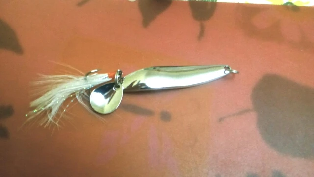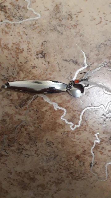 блесна огонь, с первого заброса взяла щука на 2,4 кг, крючок выдержал и засекает вполне себе.