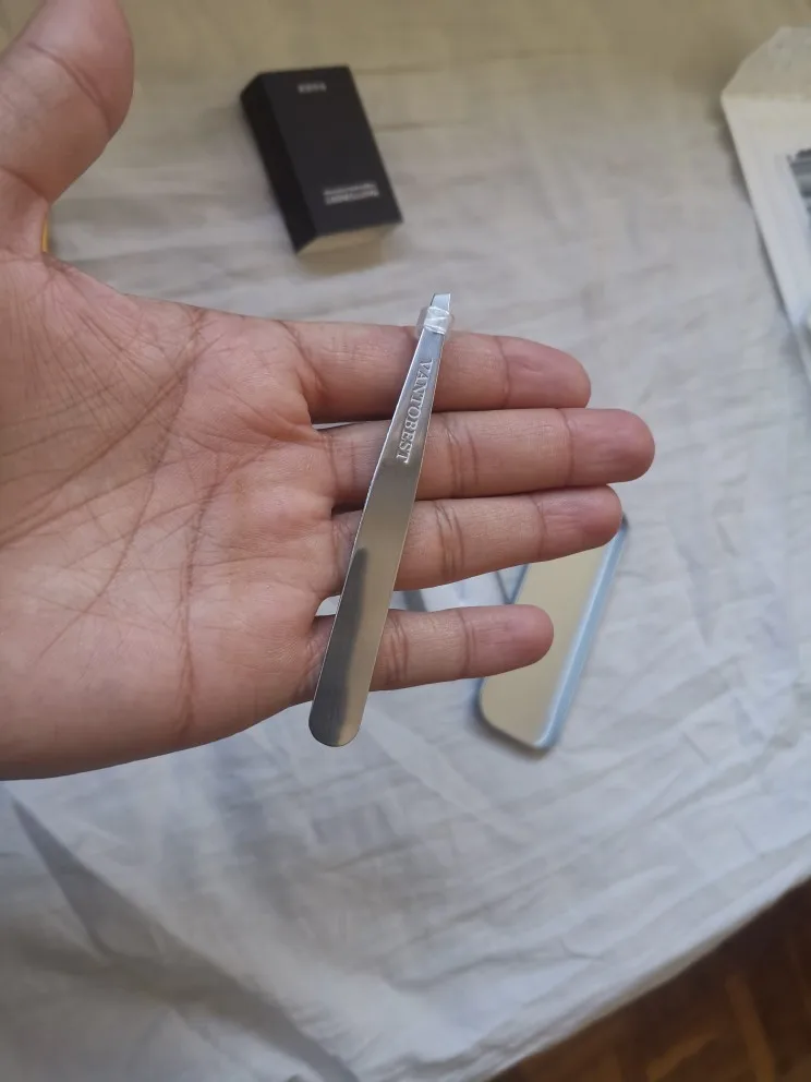 Этот Пинцет стоит дорого без причины, кончики толстые, что делает его трудно хватать на крошечных волосах для бровей. Это может быть хорошо для густых волос, но не для тонких волос