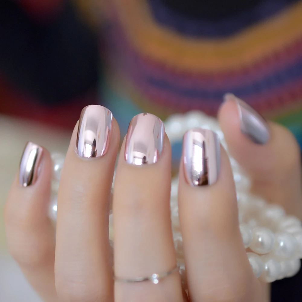 Металлическое зеркало накладные ногти нормальный светильник женские туфли розового цвета с блестящей поверхностью из акрила для Неил арта украшения для кончиков ногтей, набор из 24 штук, несколько Цвета