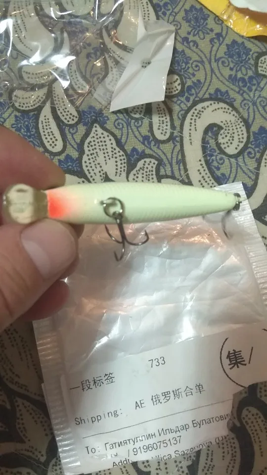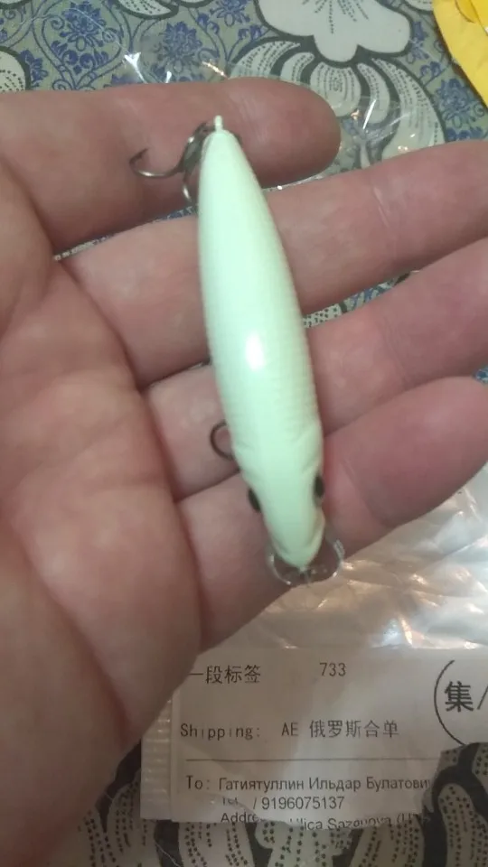 Заказ шёл долго, 2 мес. до Волгограда. Петли конечно нужно клеить, но несмотря на все, воблер огонь, играет очуметь как супер, фосфорный, все как надо. Всем доволен