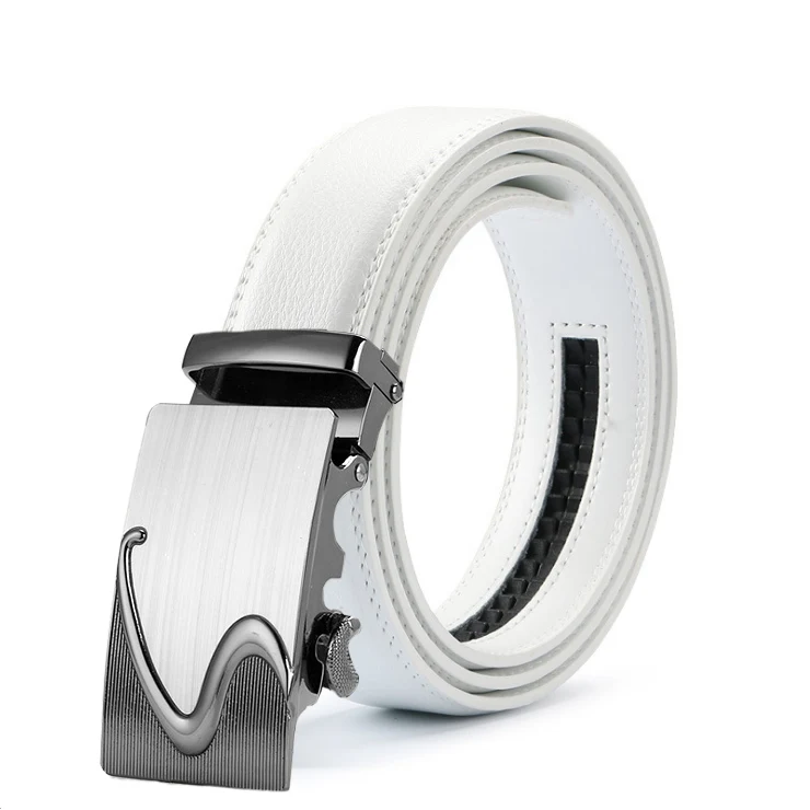 Ремень из натуральной кожи мужской, брендовый роскошный винтажный белый пояс с пряжкой