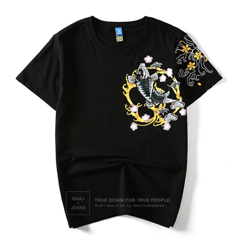Мужские футболки 2021, брендовая одежда с вышивкой рыбы, футболки в китайском японском стиле для мужчин, футболки, уличная одежда, хлопковая искусственная ткань # HIGBN
