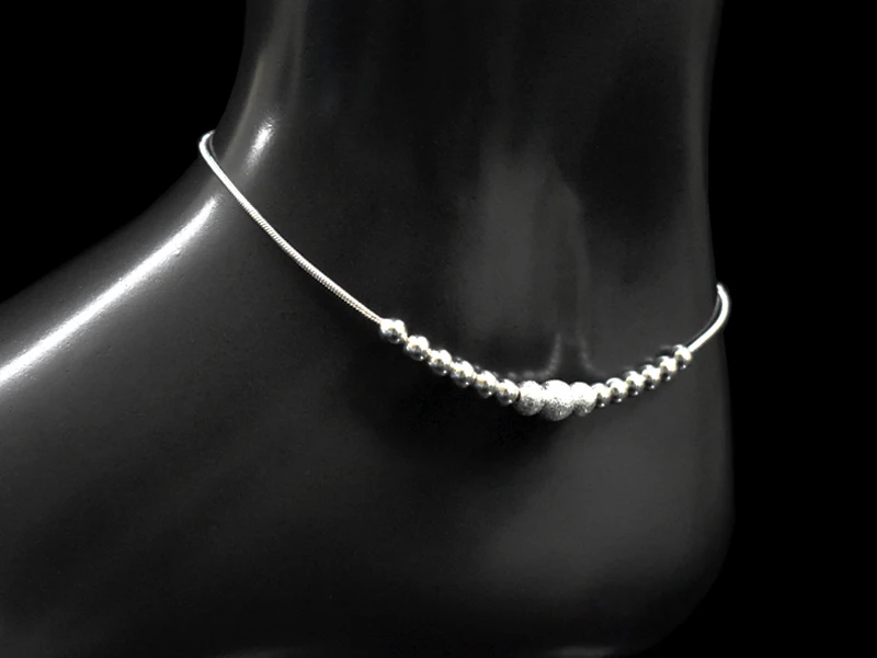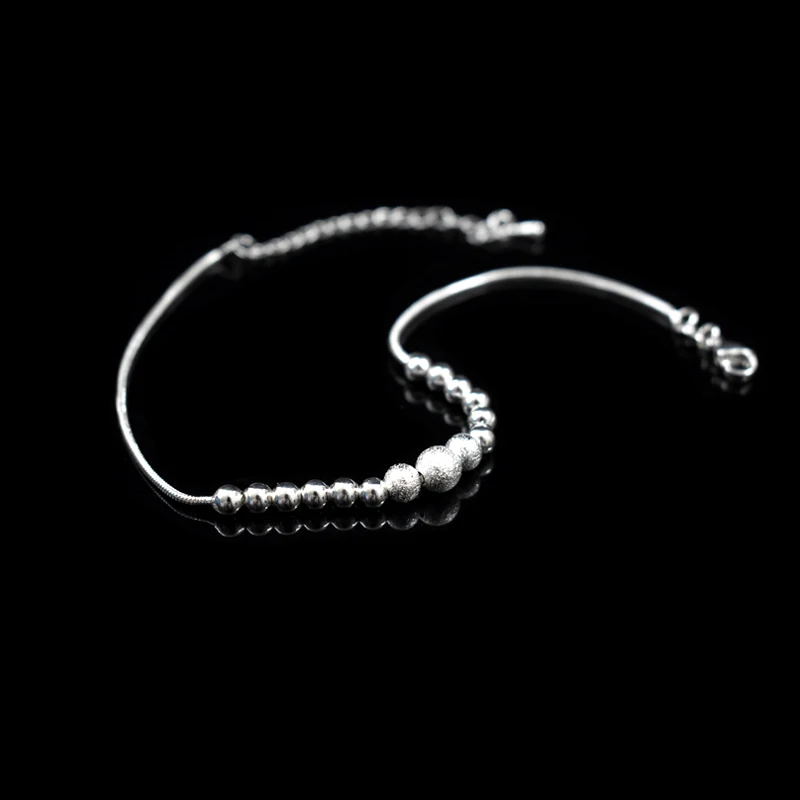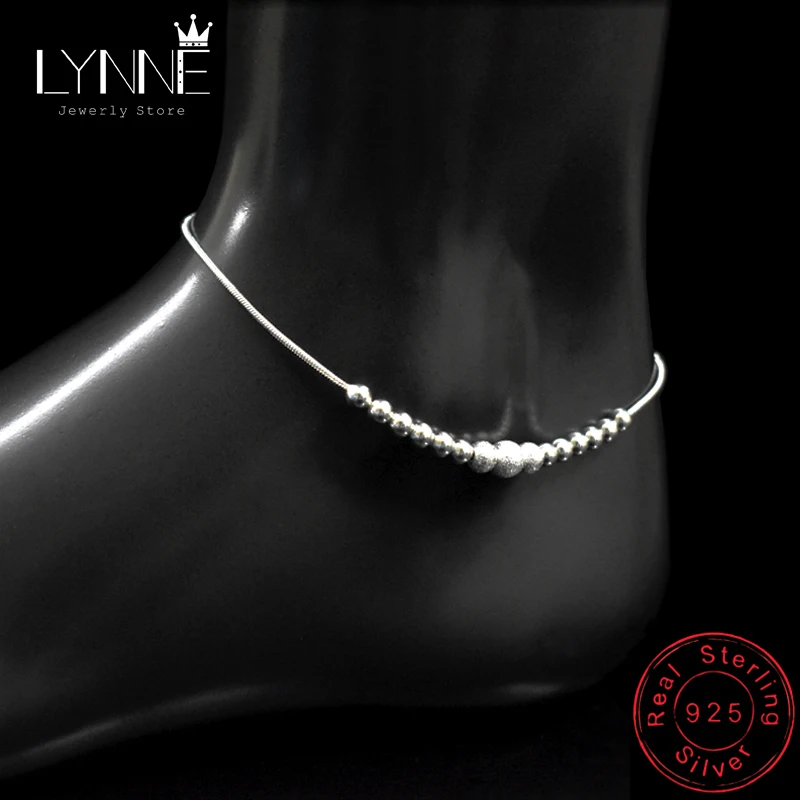 Ножной браслет с круглыми бусинами Женский, анклеты из стерлингового серебра 925 пробы с матовыми бусинами, изящные браслеты для ног, Подарочная бижутерия