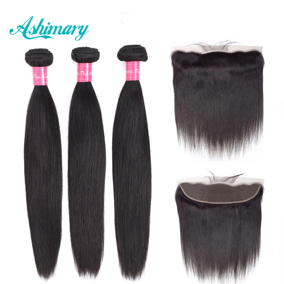 Ashimary малазийские прямые волосы 13x4 с закрытием пряди Remy чело...