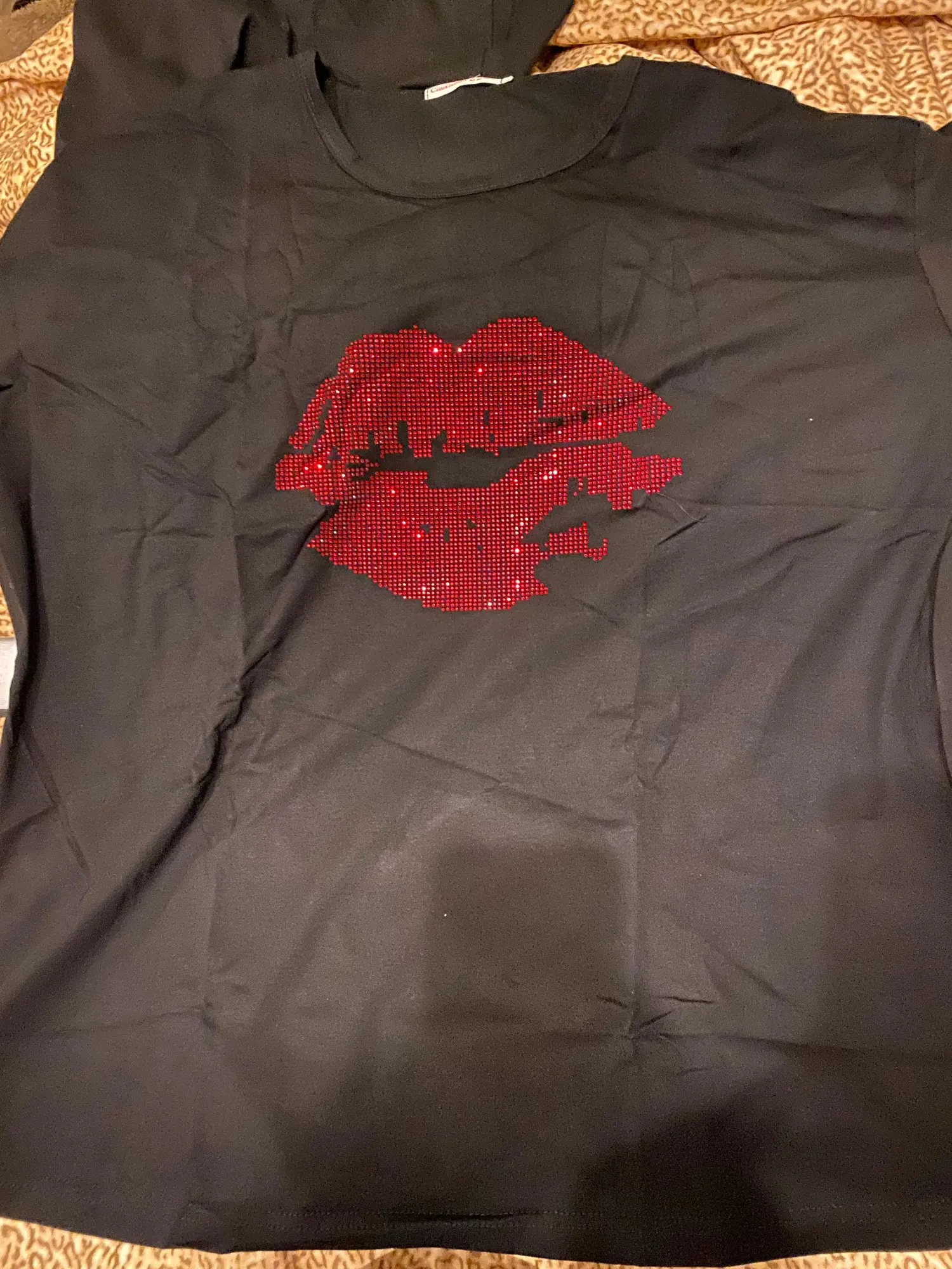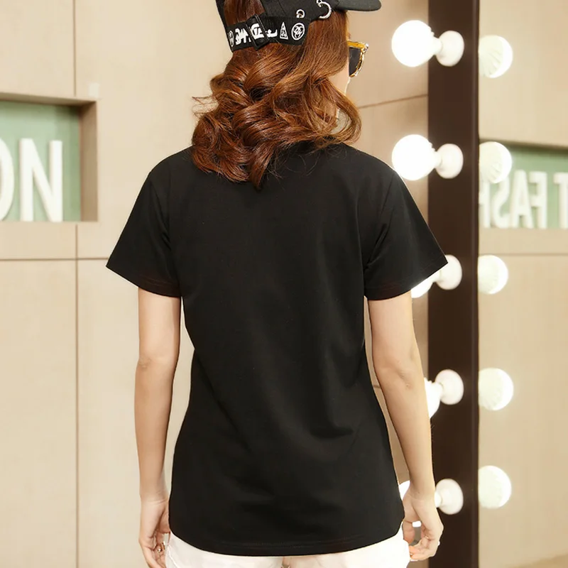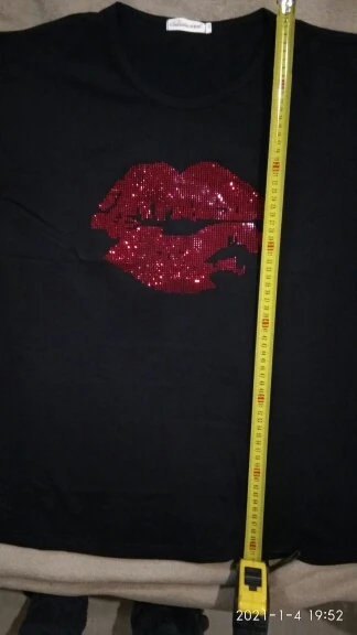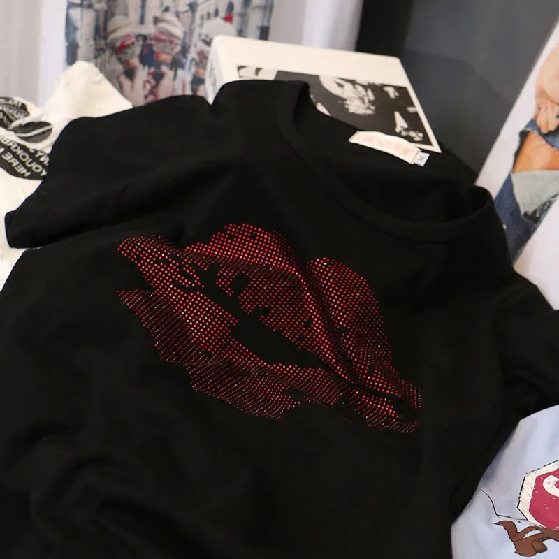 Летняя дышащая футболка с короткими рукавами для женщин, новинка 2021 года, с принтом губ, пуловеры с короткими рукавами и горячими бриллиантами, черные свободные футболки, женские топы