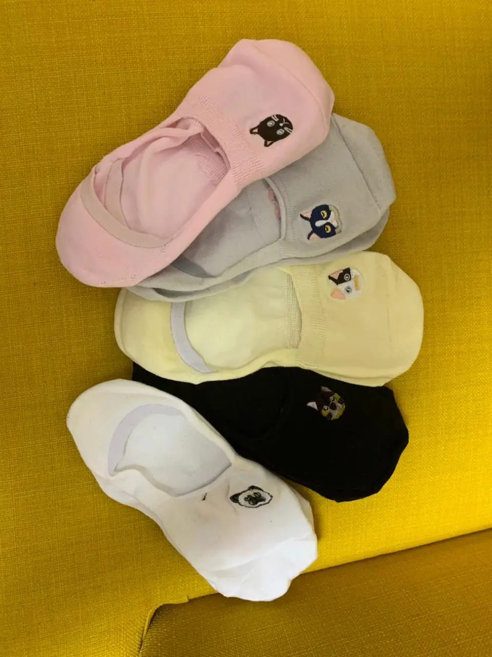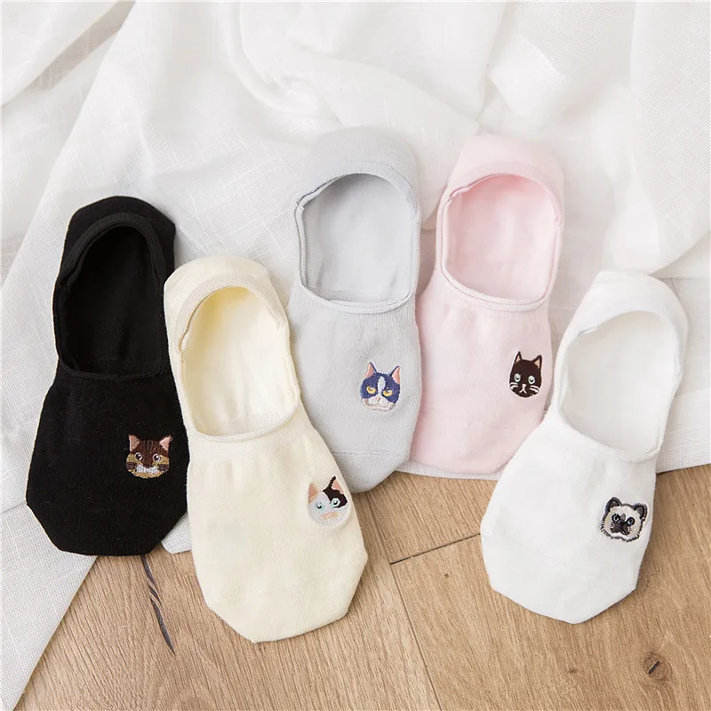 5 парлот для женщин носки для девочек карамельный цвет животных кошка с рисунком короткие носки костюм летние дышащие повседневное д