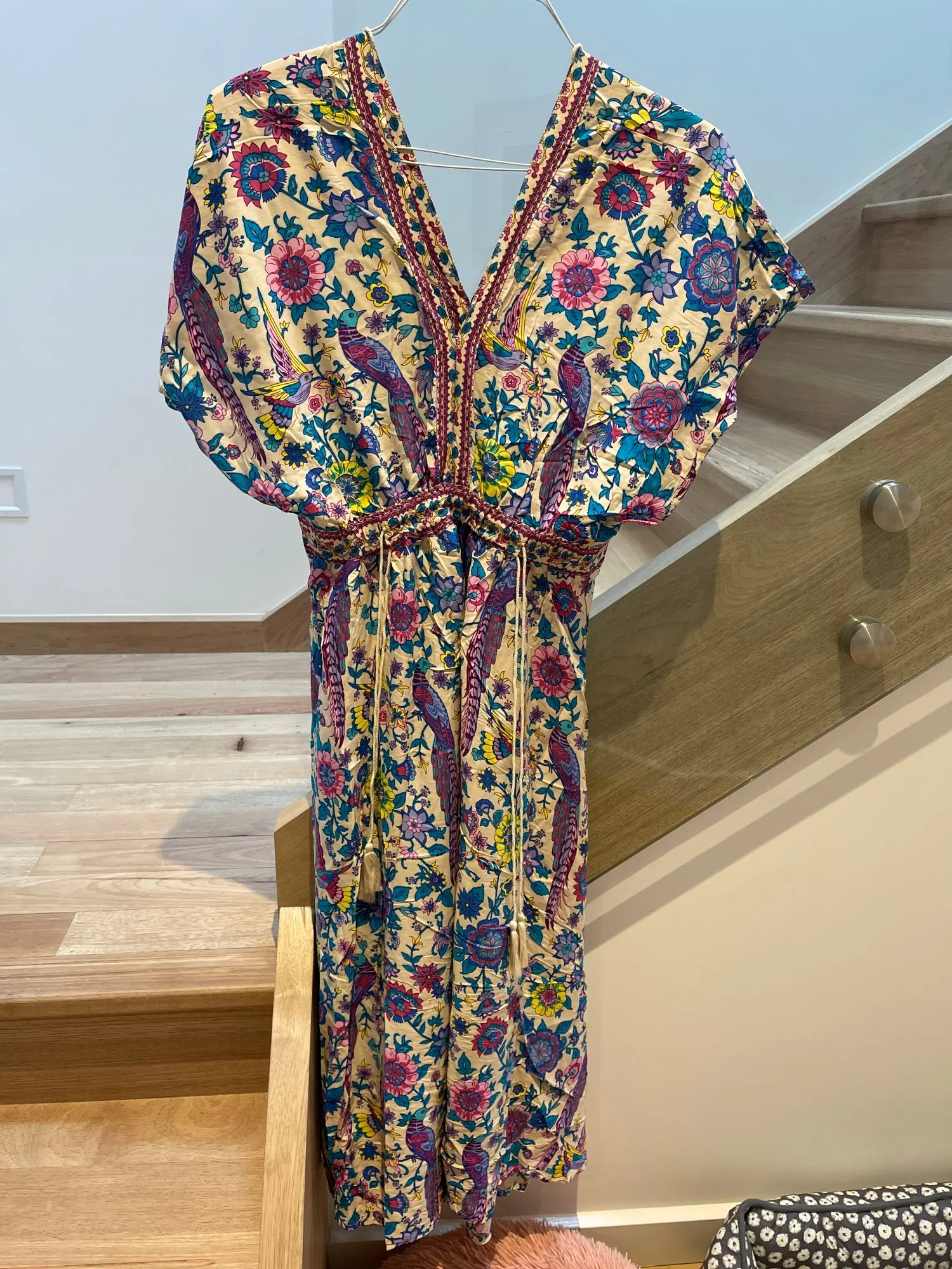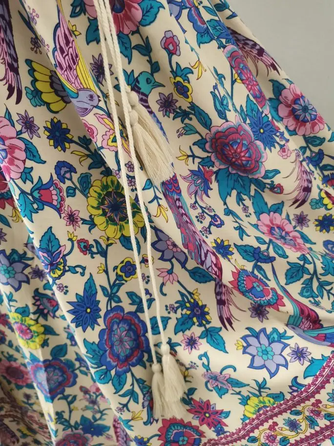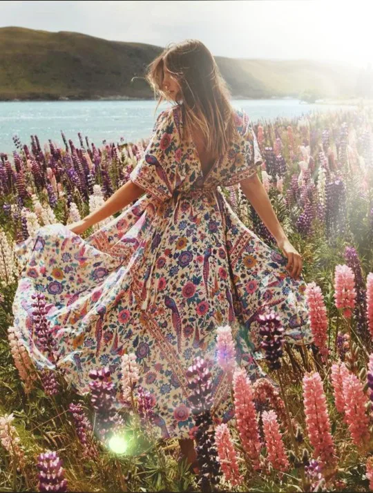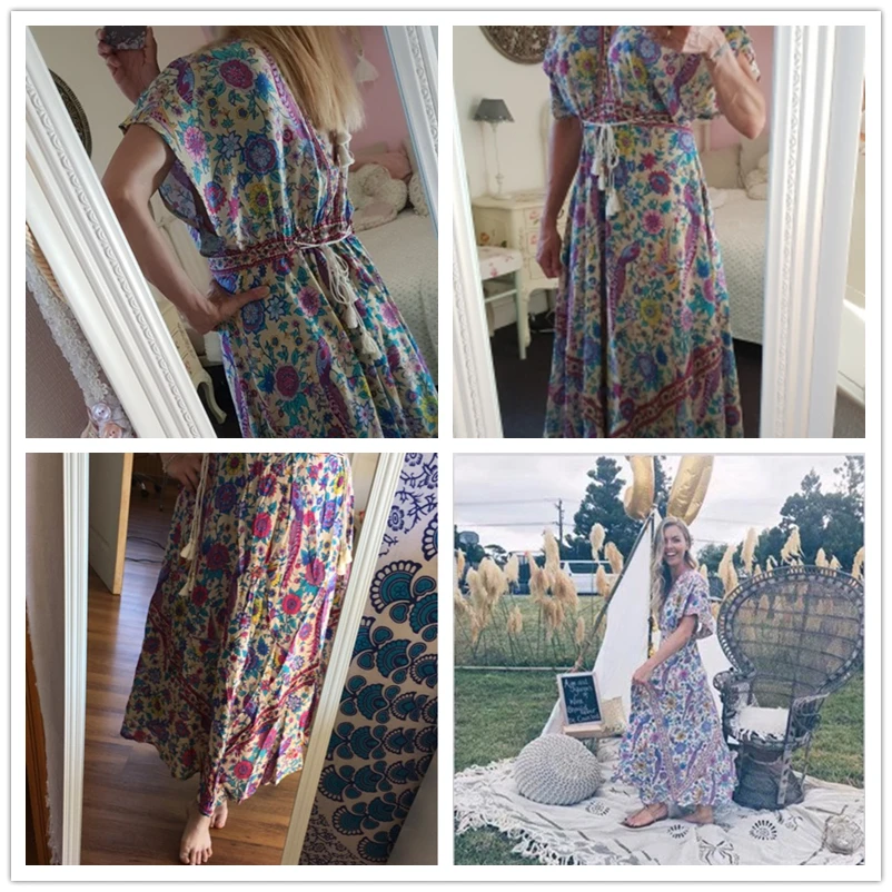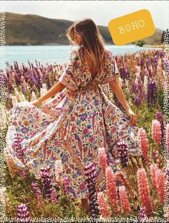 Женское винтажное богемное платье с рукавами летучая мышь и V-образным вырезом